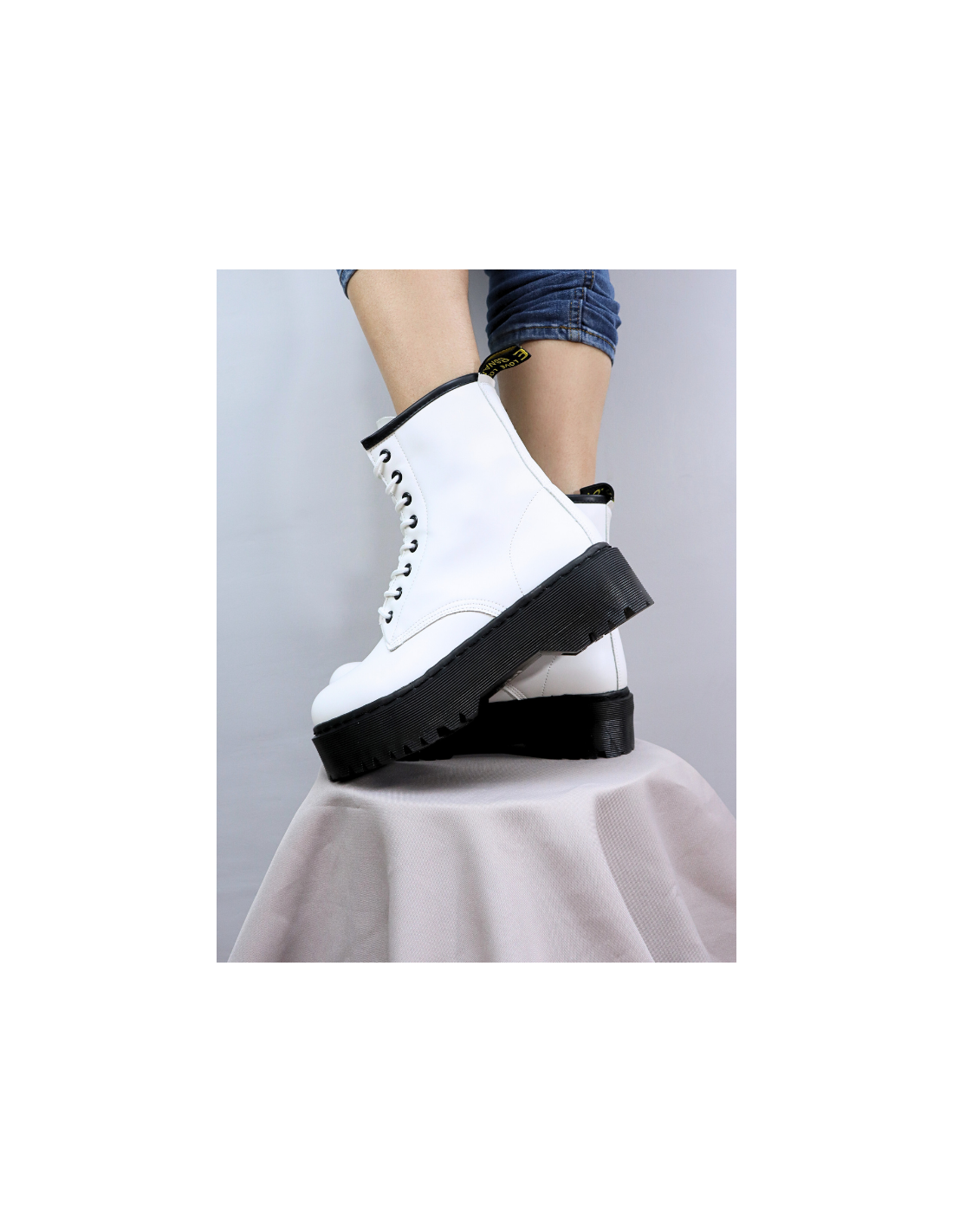 Botín para chica, cuero liso, ocho ojales para cordones, costuras, suela amortiguada, resistentes, cómodas, de moda.