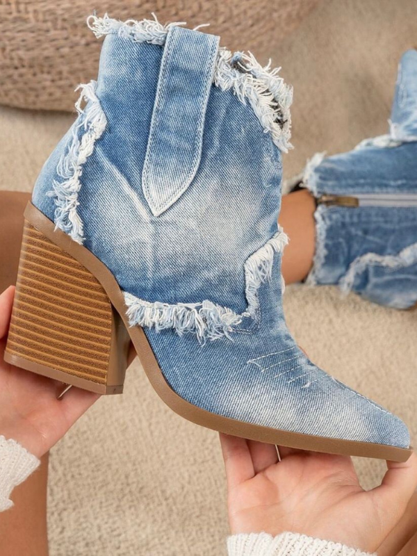 Nueva Colección! Original botín, de tacón grueso campero, diseño de pantalón vaquero rasgado! botin a la altura de tobillo, con cremallera, altura de tacón: