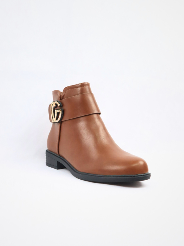Nueva Colección! Botín de tacón bajo, efecto piel liso, con detalle metálico decorativo "CG", cremallera interior por el lateral, Plantilla de goma antideslizante, color marrón, diseño clásico, cómodos, ideal para usar con vestidos cortos, pantalones cortos, faldas, pantalones, vaqueros, diseño casual clásico, combinable con todos lo looks!! temporada, primavera/otoño/invierno.