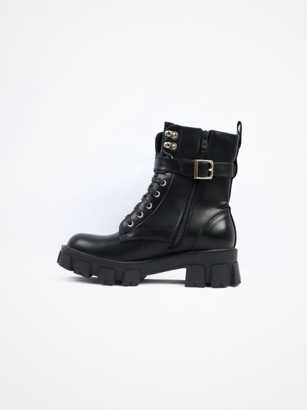 Nueva Colección! botín estilo militar, con cordones, punta redonda, suela de goma dentada antideslizante, modelo monocolor, de color negro, diseño de moda, con bolsillo decorativo, facilidad al poner, tiene suela antideslizante, cómodo al andar, estilo en tendencia, para día a día, combinable con todo tipo de estilo, pantalones cortos , largos, vestidos, ideal para personas que buscan comodidad y estar en tendencia! temporada de primavera/ Otoño/invierno.
