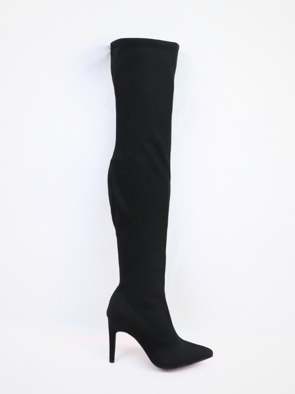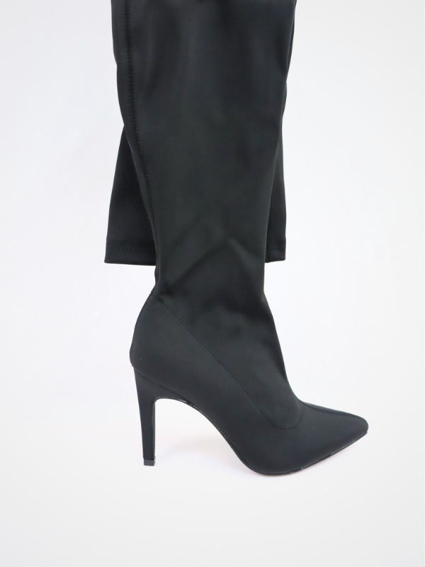 Bota alta estilo calcetin licra, tacón aguja, tacón altura 10cm. acabado en punta.