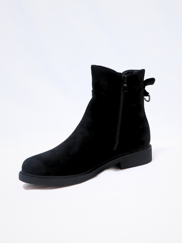 Nueva Colección! Botín plano, con elástico al tobillo lo que lo hace cómodo al quitar y poner, estilo moderno, con cierre de cremallera lateral de suela antideslizante y pequeño tacón, lo que le da estabilidad y seguridad al andar, tiras decorativas, botín unicolor liso negro, estilo muy moderno y en tendencia! ideales día a día, combinables y cómodos! para Temporada, primavera/ Otoño/invierno.
