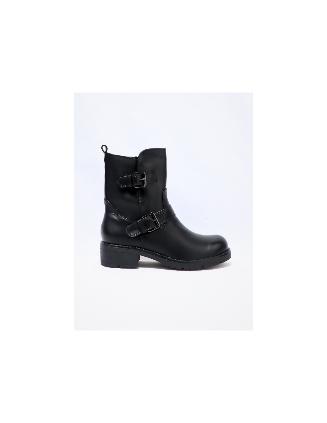 Nueva Colección! botín estilo motera, para mujer, con hebillas, lisas, color negro, facilidad al poner, suela con tacón bajo, y antideslizante, con cómodo al andar, para día a día, y personas que buscan comodidad, temporada de primavera/ Otoño/invierno.