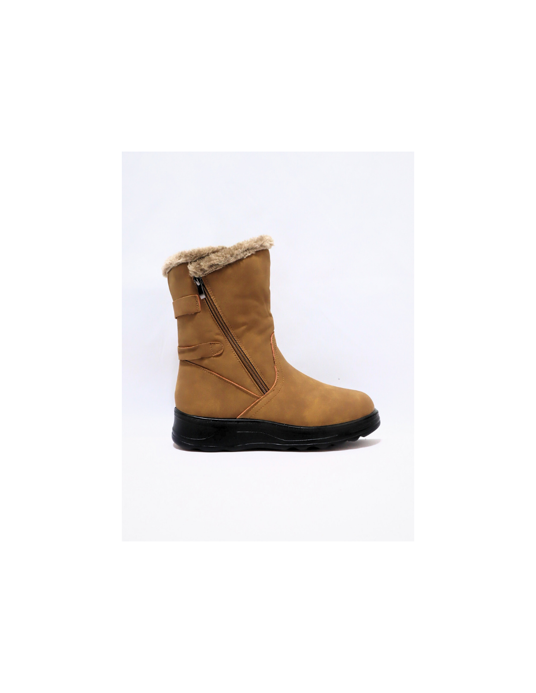 Nueva Colección! Botín de cuña con interior de borreguito, cálidos, cómodos para andar, botín unicolor liso camel, con cierre de cremallera por el lateral interior del botín, y cremallera decorativa, estilo muy moderno y en tendencia! ideales para andar, día a día y el trabajo, combinables con vestidos y faldas, pantalones largos y cortos, para Temporada, primavera/ Otoño/invierno.