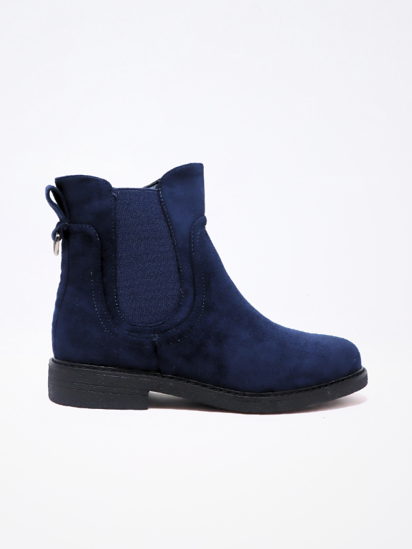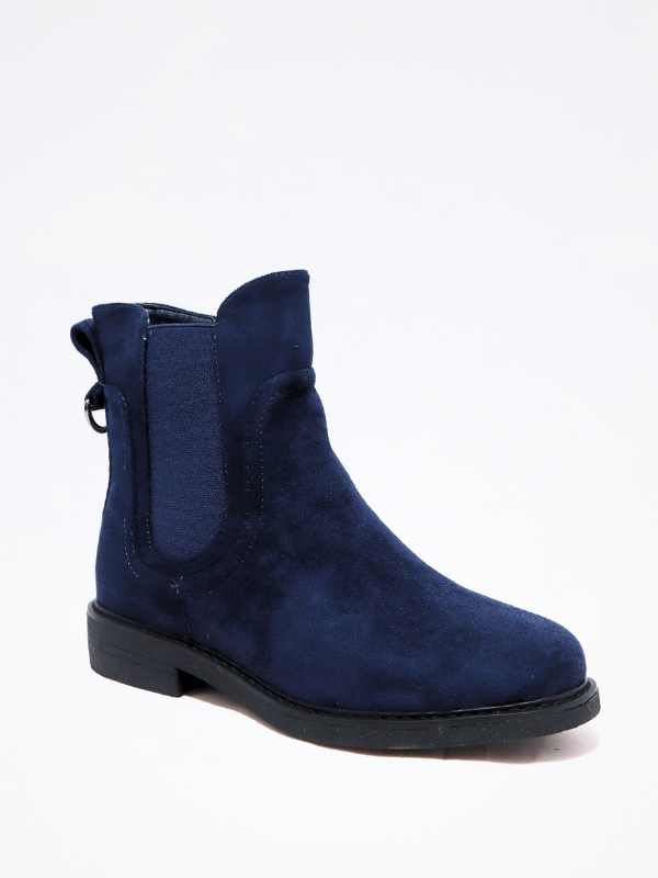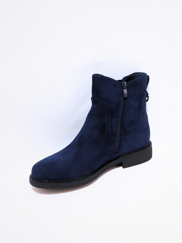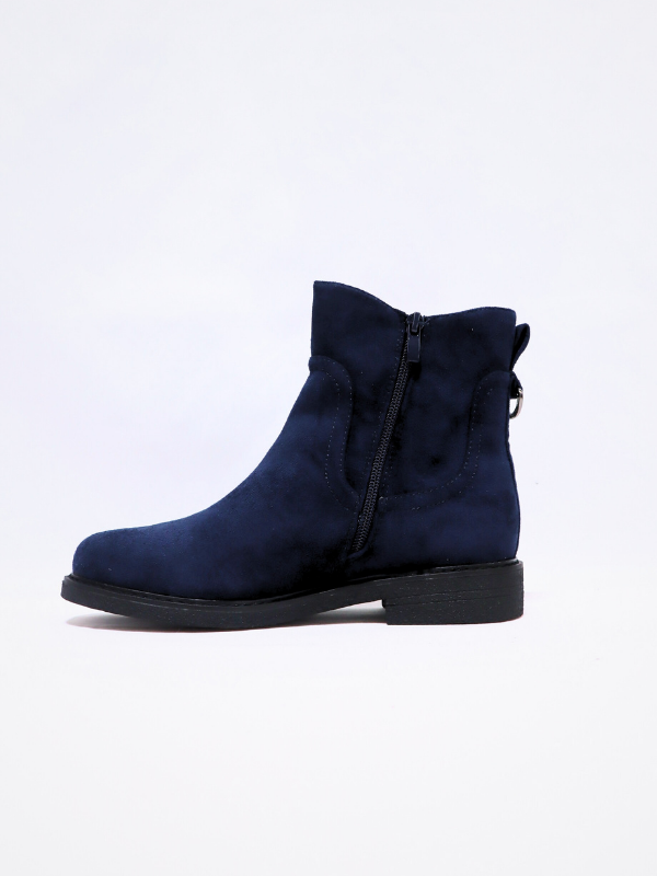 Nueva Colección! Botín plano, en ante, con elástico al tobillo lo que lo hace cómodo al quitar y poner, estilo moderno, con cierre de cremallera lateral de suela antideslizante y pequeño tacón, lo que le da estabilidad  y seguridad al andar, botín unicolor liso azul marino,  estilo muy moderno y en tendencia! ideales día a dia, combinables y cómodos!  para Temporada, primavera/ Otoño/invierno.