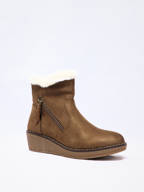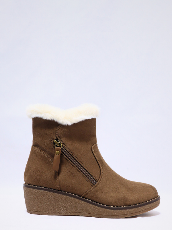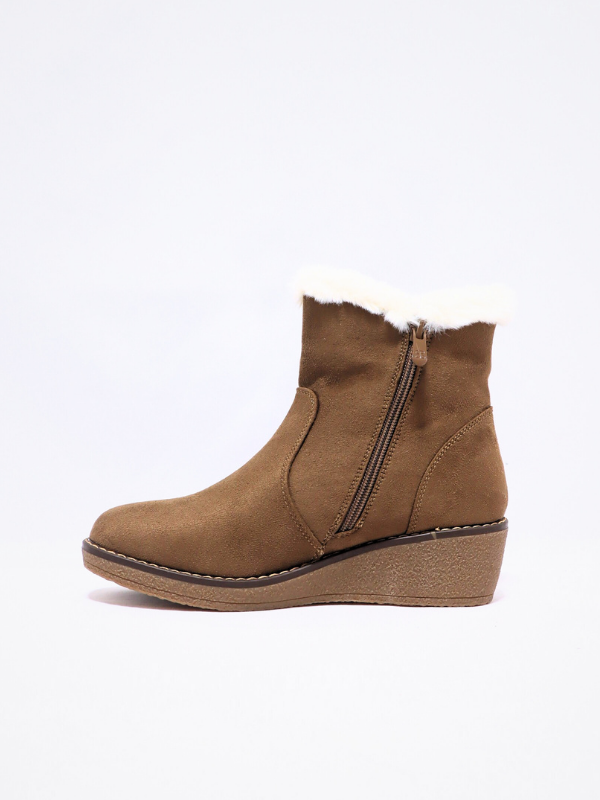 Nueva Colección! Botín de cuña con interior de borreguito color blanco, resistente al frio, cómodos para andar, botas unicolor liso marrón, con cierre de cremallera por el lateral interior del botín, y cremallera decorativa, estilo muy moderno y en tendencia! ideales para andar, día a día y el trabajo, combinables con vestidos y faldas, pantalones largos y cortos, para Temporada, primavera/ Otoño/invierno.