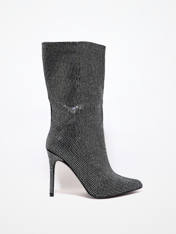 Nueva Coleccion! Botas media caña, negras con pedrerias, diamantes de imitacion, tacon fino, acabado en punta.
