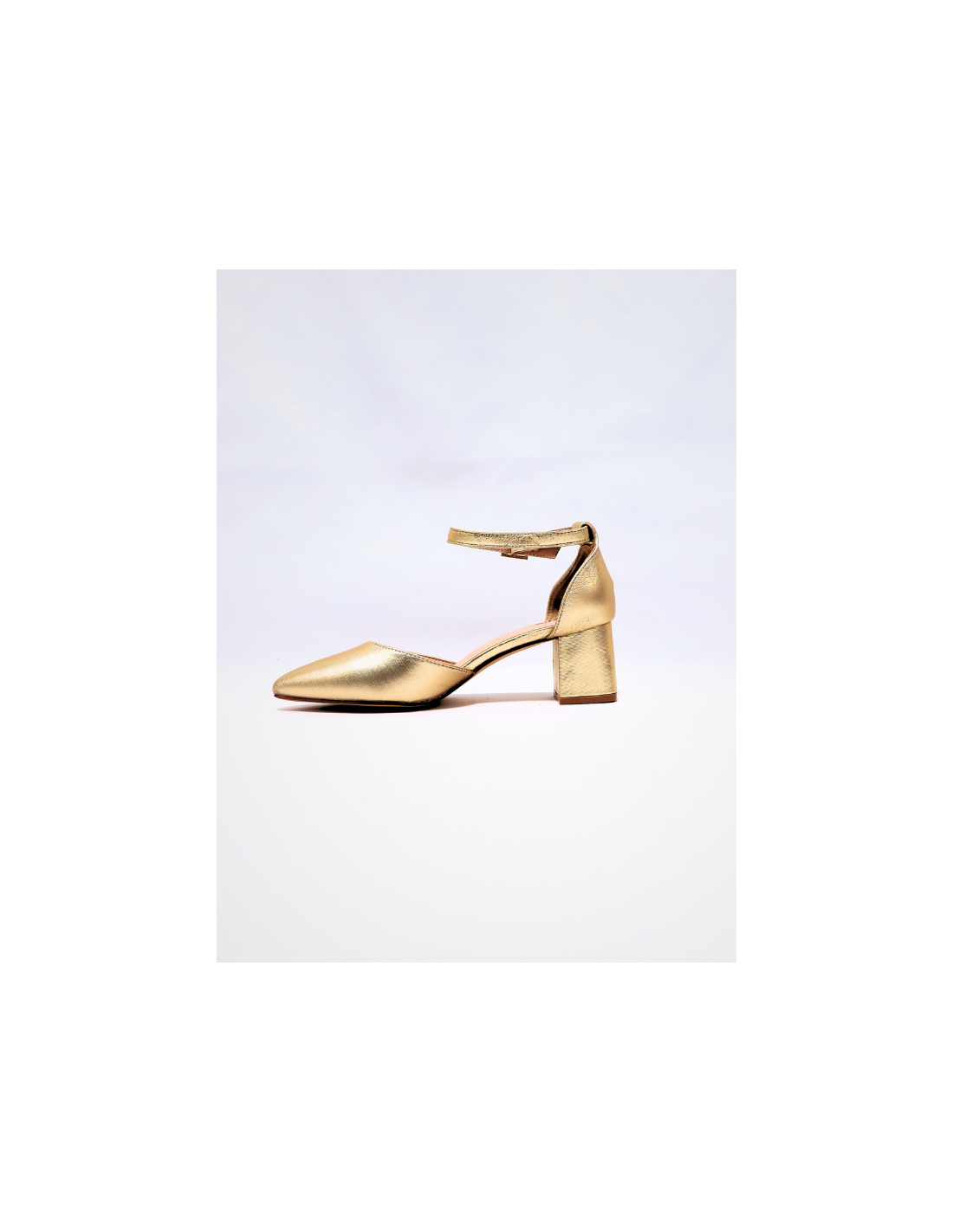 Nueva Colección! Zapato estilo bailarina con tacón grueso de 5,5 cm de altura, para mujer, con hebilla tobillera ajustable de sujeción, color dorado, corte liso, piso goma, punta cerrada, suela de goma antideslizante, para mejor comodidad y seguridad, diseño casual formal, ideal para trabajar, facil de combinar, temporada Primavera/otoño/invierno.