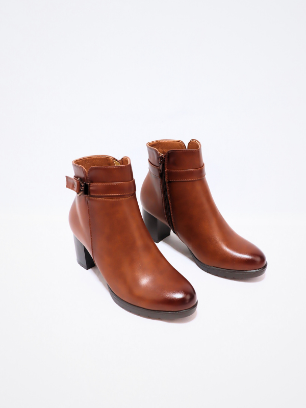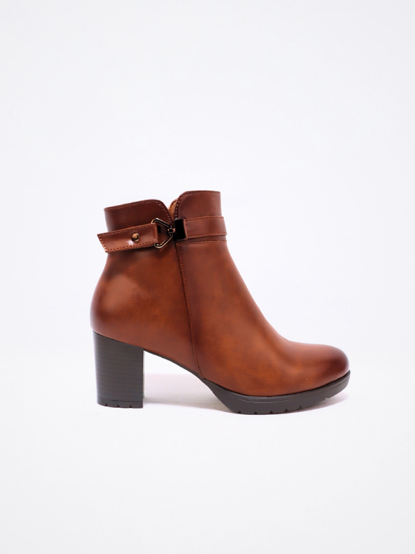 Nueva Colección! Botín con tacón cuadrado altura hasta el tobillo, estilo moderno, con cierre de cremallera lateral de suela antideslizante lo que le da estabilidad y seguridad al andar, hebilla decorativa, botín unicolor liso camel, estilo muy moderno casual y en tendencia! ideales día a día, combinables y cómodos! para Temporada, primavera/ Otoño/invierno.