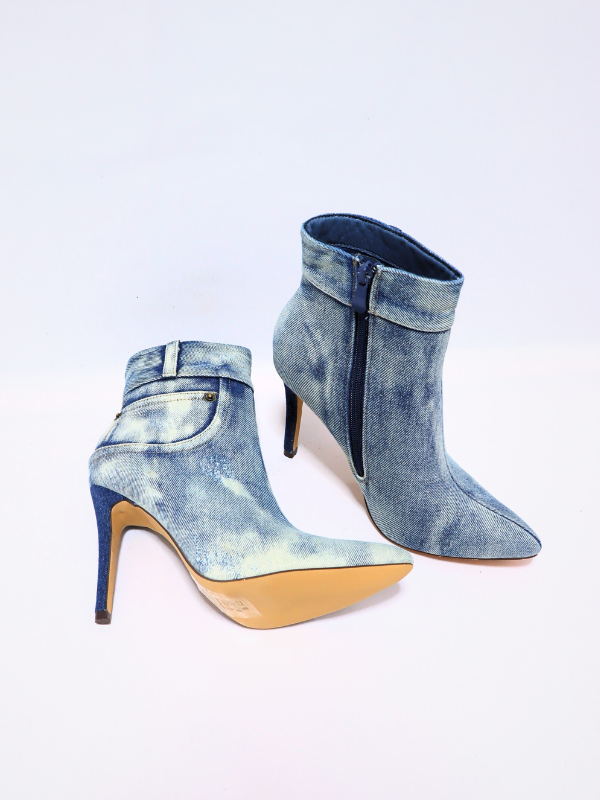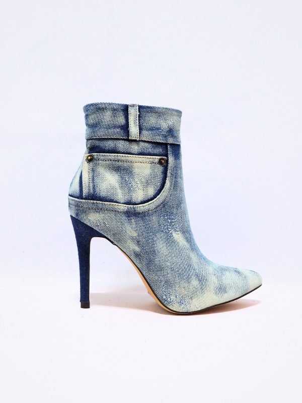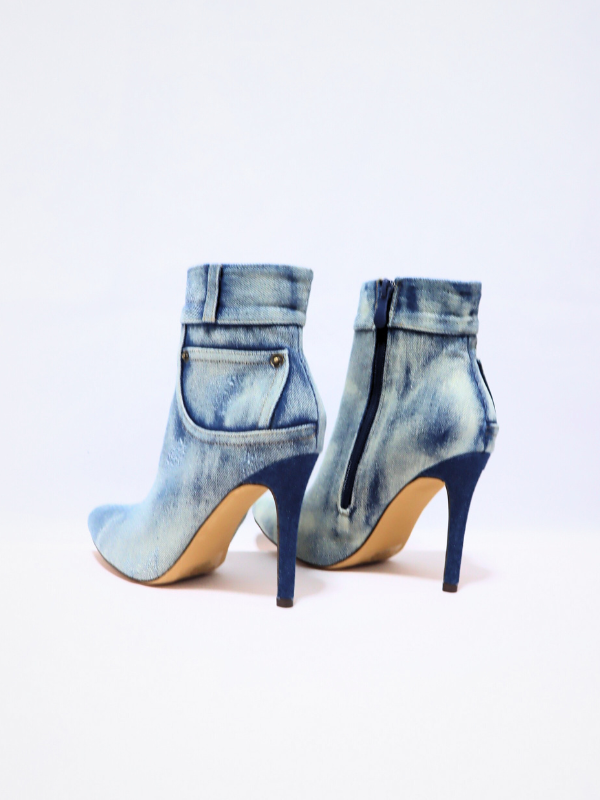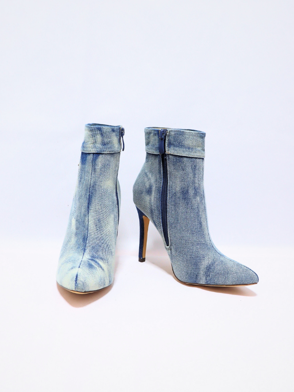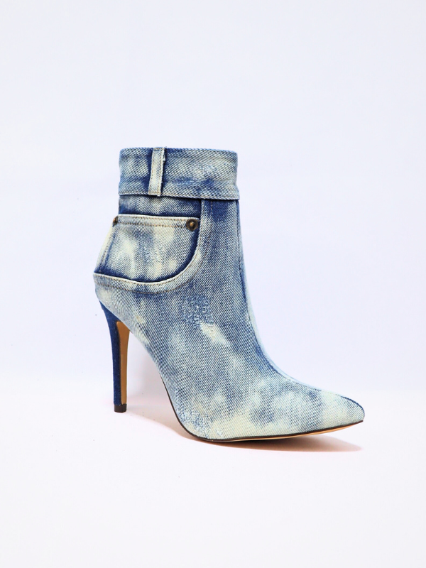 Nueva Colección! Original botín, de tacón de aguja, diseño de pantalón vaquero gastado, botín a la altura de tobillo, con cremallera,
