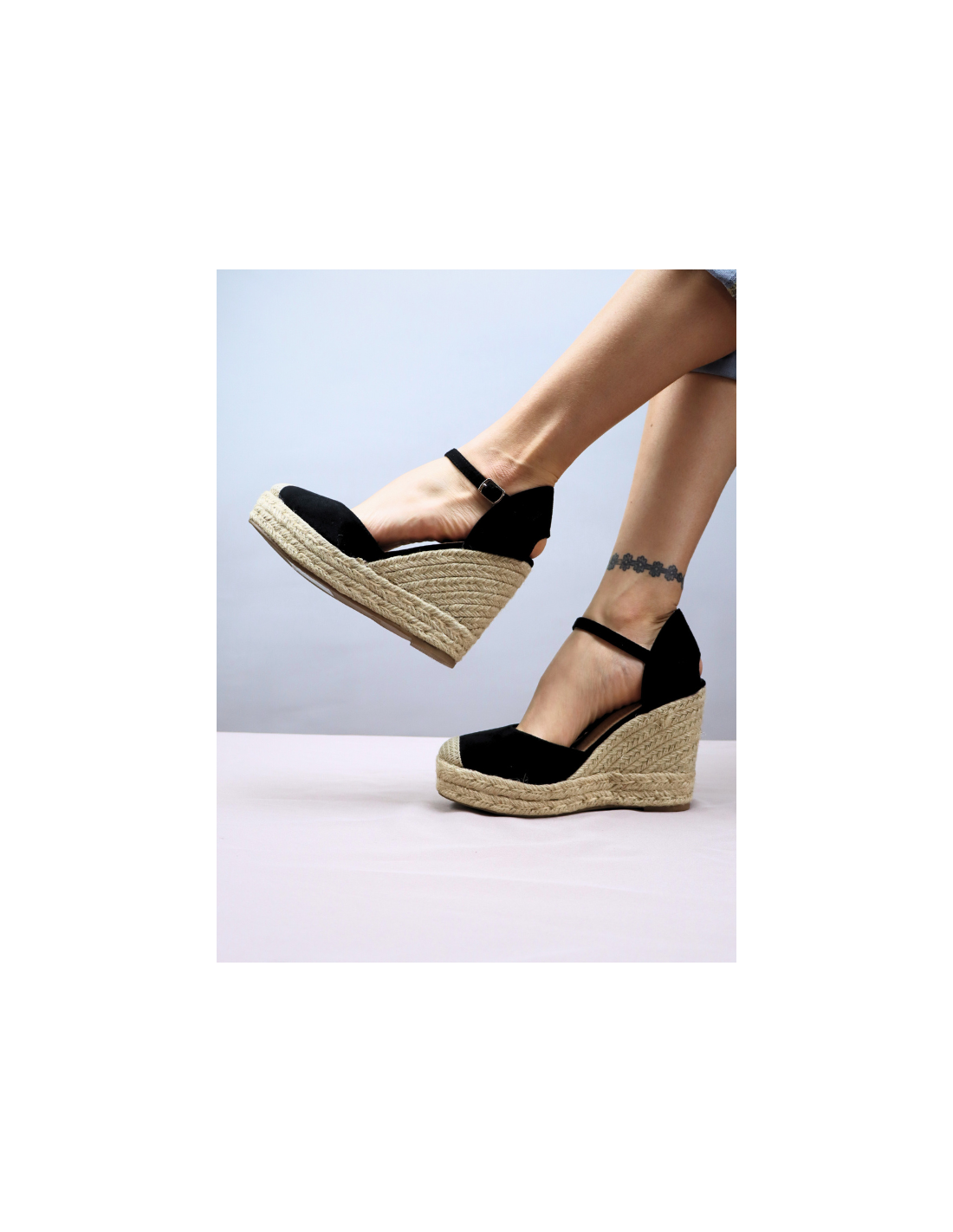 Espadrilles made of suede with esparto wedge, open heel, adjustable ankle strap, soft insole, rubber sole, ideal for summer.