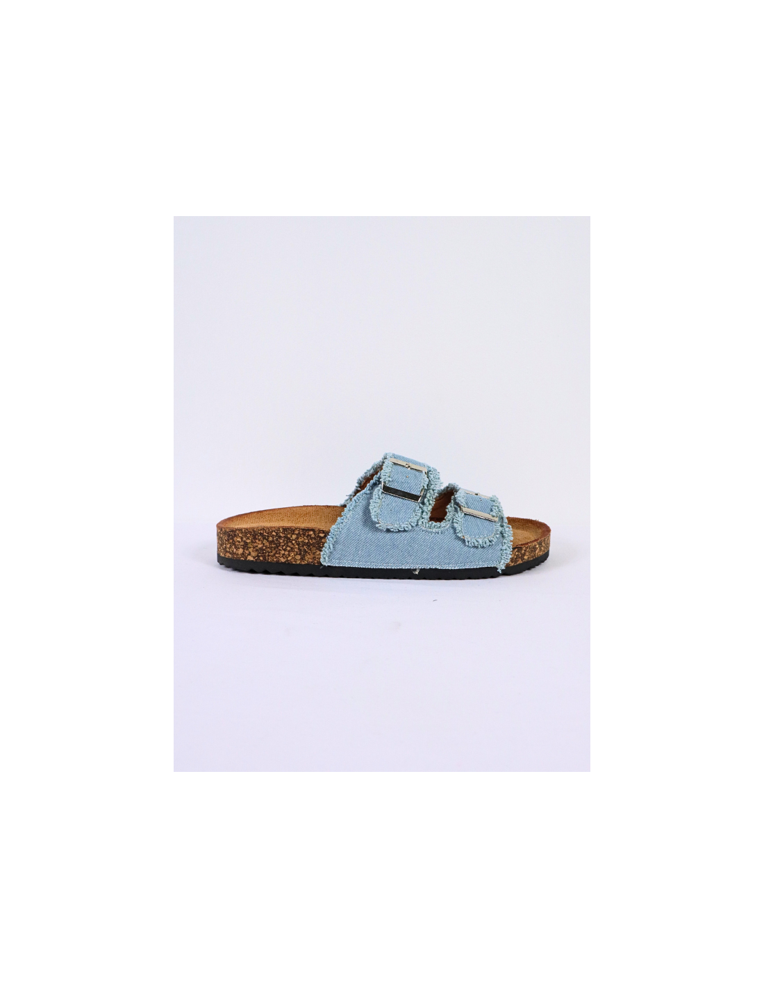 Flat summer sandal, rubber sole, soft insole, with double buckle design in denim material, in blue, soft insole, open toe, slingback, casual fashion model, ideal for the spring/summer season, or easy daily wear to combine, comfortable.