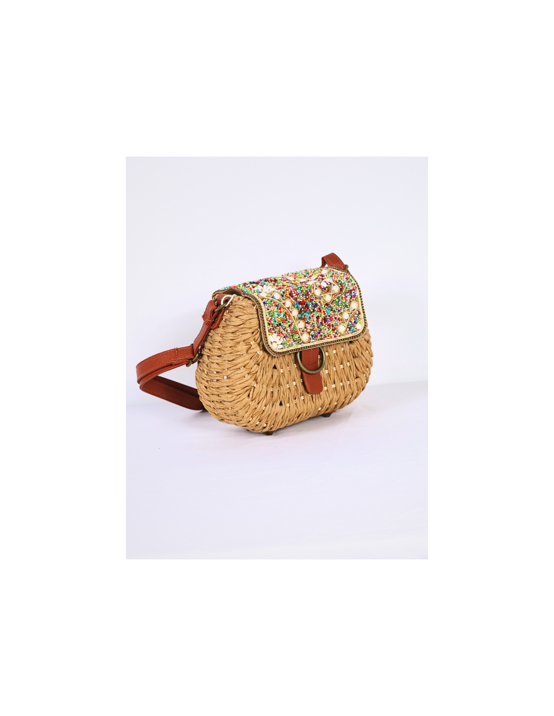 Small bag, with adjustable shoulder strap, bag made of raffia, lid design decorated with colored beads, bohemian style! ideal to combine with our esparto sandals collection!