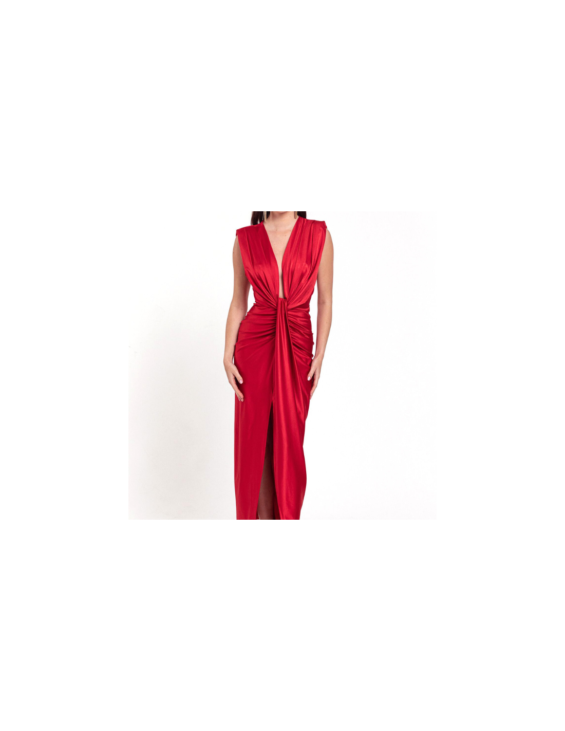 Party dress, midi cut, tight cut, wide neckline, sleeveless, knot effect detail on the front, with a gather that enhances your silhouette, central opening detail, dress made of 90% nylon and 10 % elastane, lycra effect, one size fits all and as it is elastic it reaches sizes 36 to 42. Ideal for the spring summer season, ideal to wear as a wedding guest!