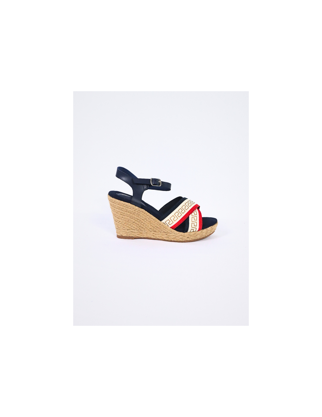Esparto wedge sandal, rubber sole, with crossed rope details with inspirational print, combined colors, smooth insole, adjustable ankle strap and buckle closure, open toe, closed heel, casual fashion model, ideal for the spring/summer season summer, or daily wear, easy to combine, comfortable.