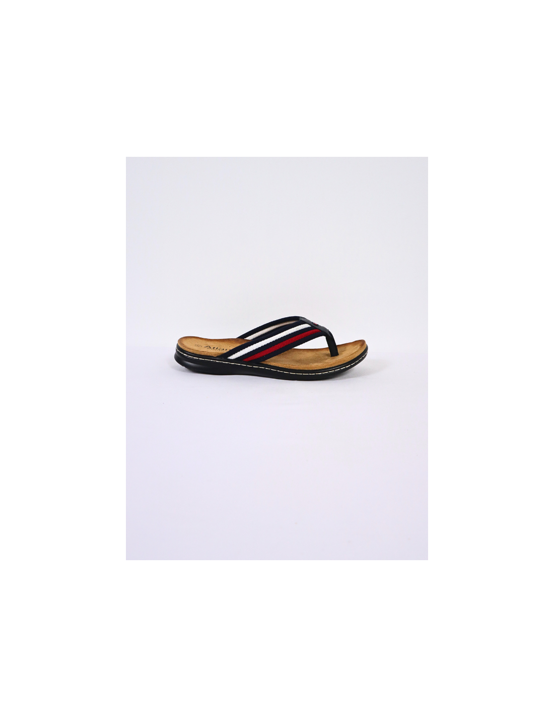Men's toe sandal, made of very soft microfiber and imitation leather, combined colors black with red and white, the sole made of very light polyurethane that gives comfort when walking, padded bio-type insole, ideal for everyday use, summer season!