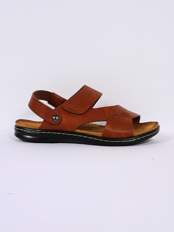 Men's sandals, asymmetrical strappy instep, edge stitching design, snap button closure, slingback, open toe, soft insole, rubber sole, comfortable sandals ideal for everyday wear, for this summer season!