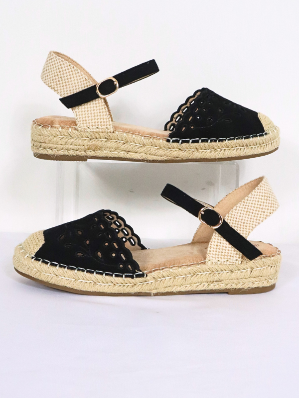 ALPARGATA MUJER TROQUELADO FLORES CON CUÑA BAJA DE ESPARTO TEOVEL BASIC N5625