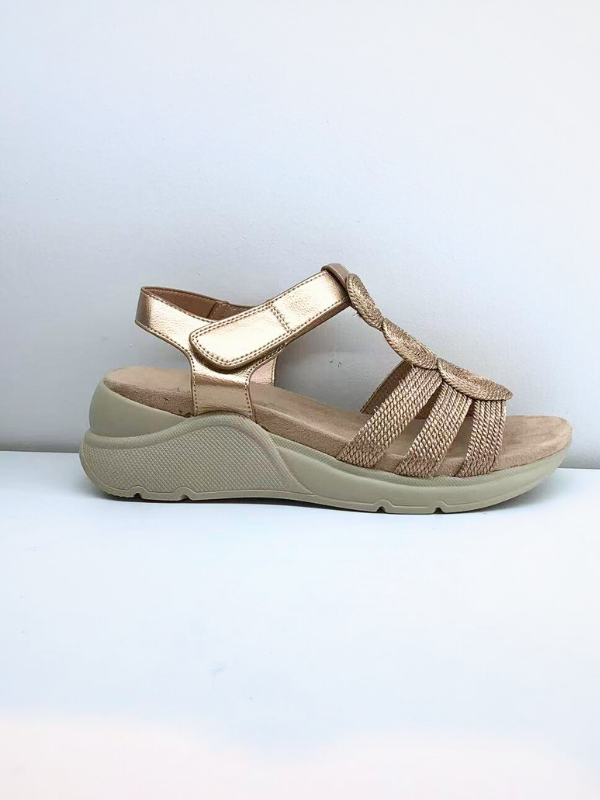 Sandalia de Andarina anatómica con piel metal y pala de trenza con piso y planta de descanso