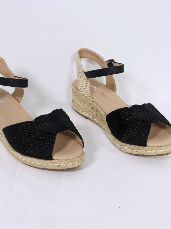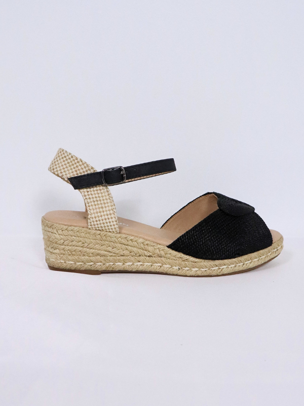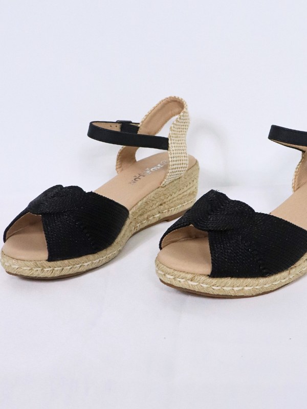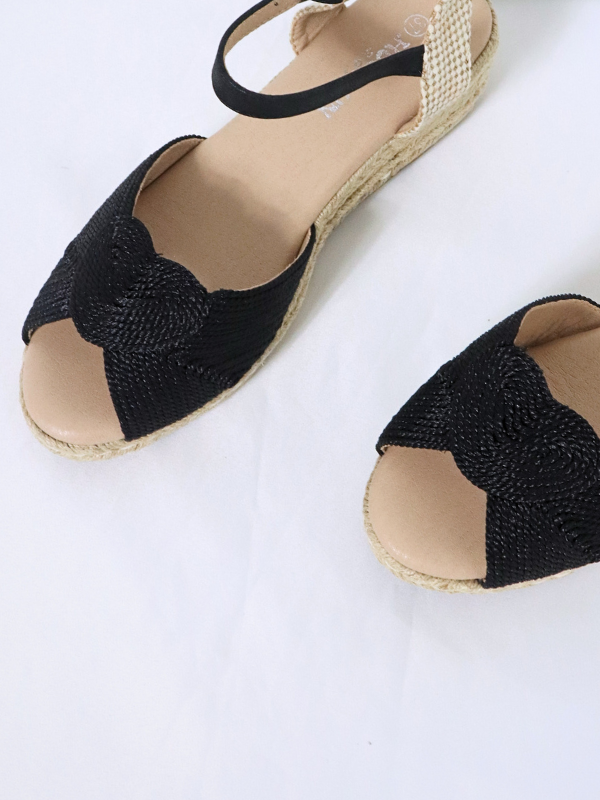 Sandalia Cuña esparto tira tobillo Negro Mujer