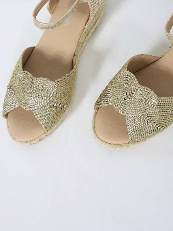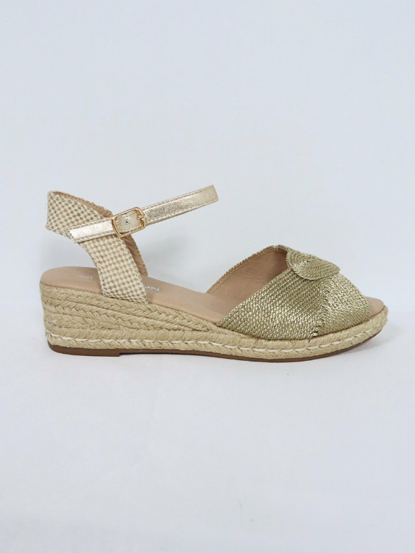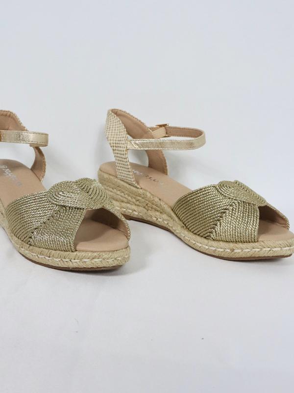 Sandalia Cuña esparto tira tobillo Dorado Mujer