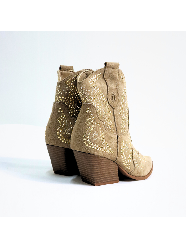 Botines con adorno metálico, tacón cubano de 6cm y cremallera lateral