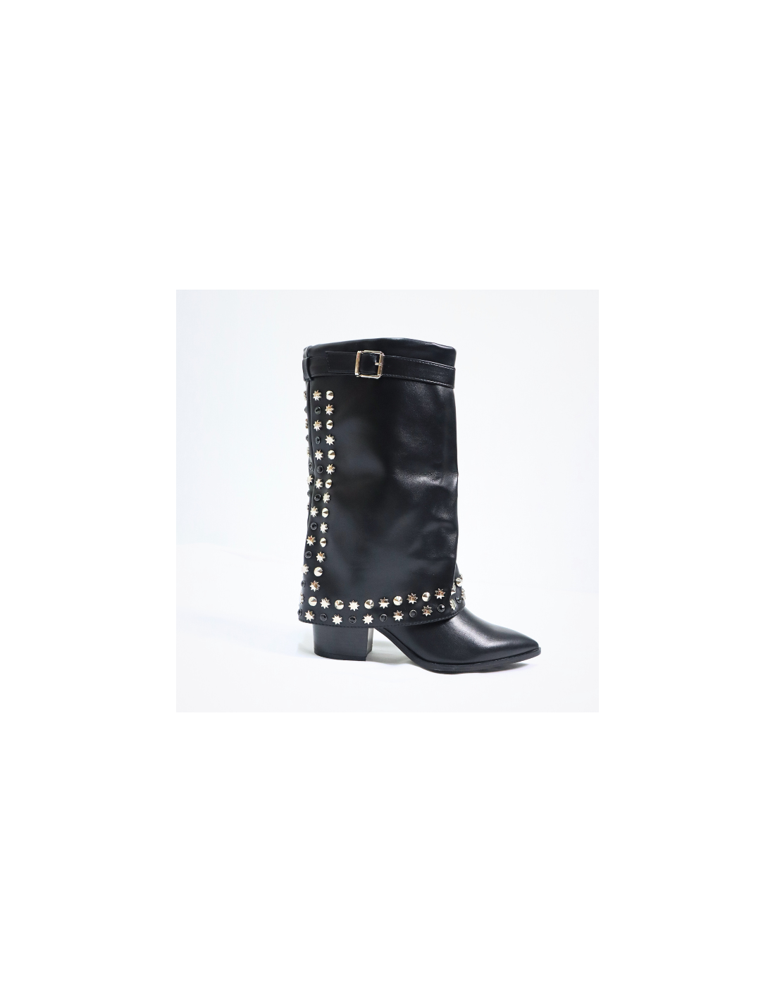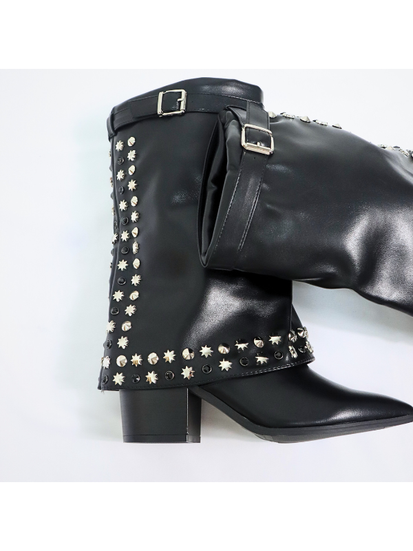 Botas altas de punta afilada con tacón , adorno metálico y cremallera lateral interior
