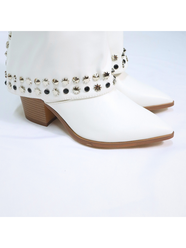 Botas altas de punta afilada con tacón , adorno metálico y cremallera lateral interior