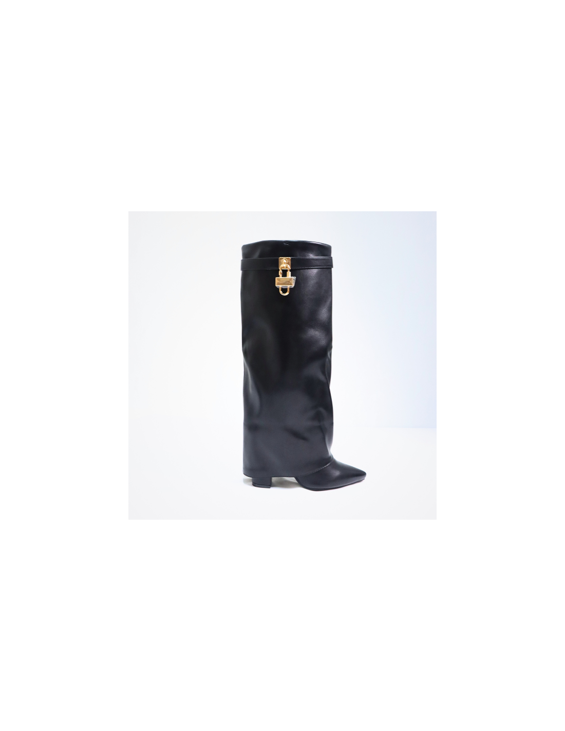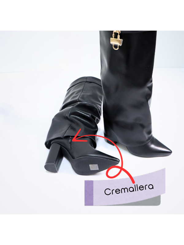 Botas altas de punta afilada con tacón cuadrado, material PU suave