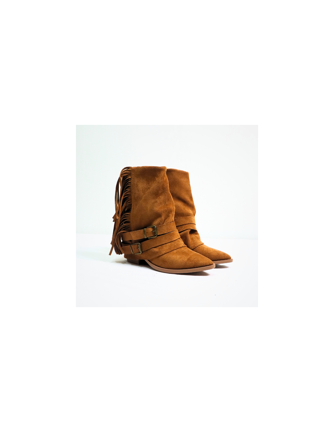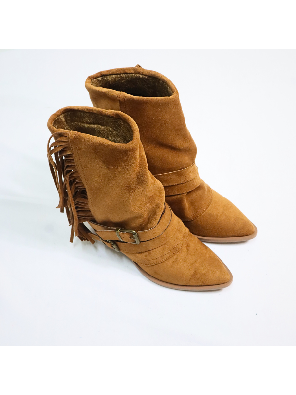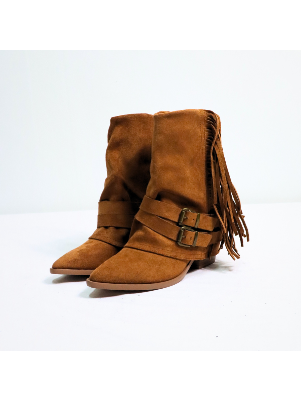 Botines de doble capa con cremallera lateral interior, flecos y dos correas con hebilla metálica