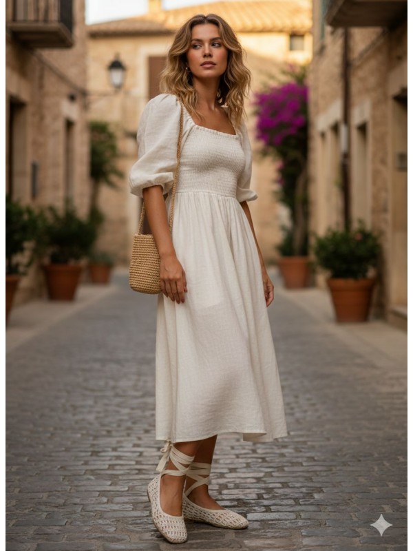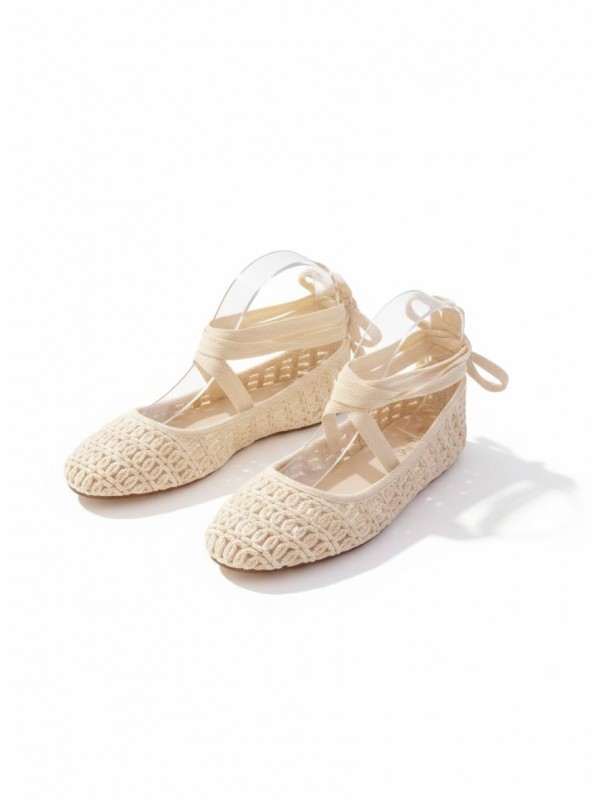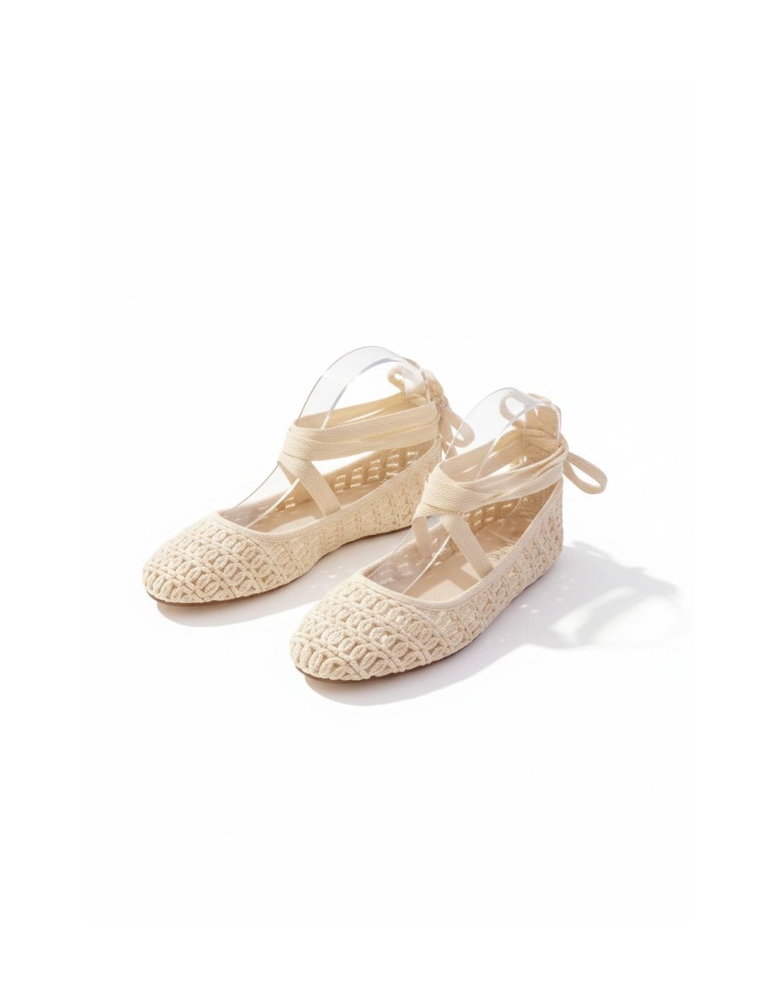 Zapatos planos de primavera-verano en tono beige, diseño calado y transpirable con cordones
