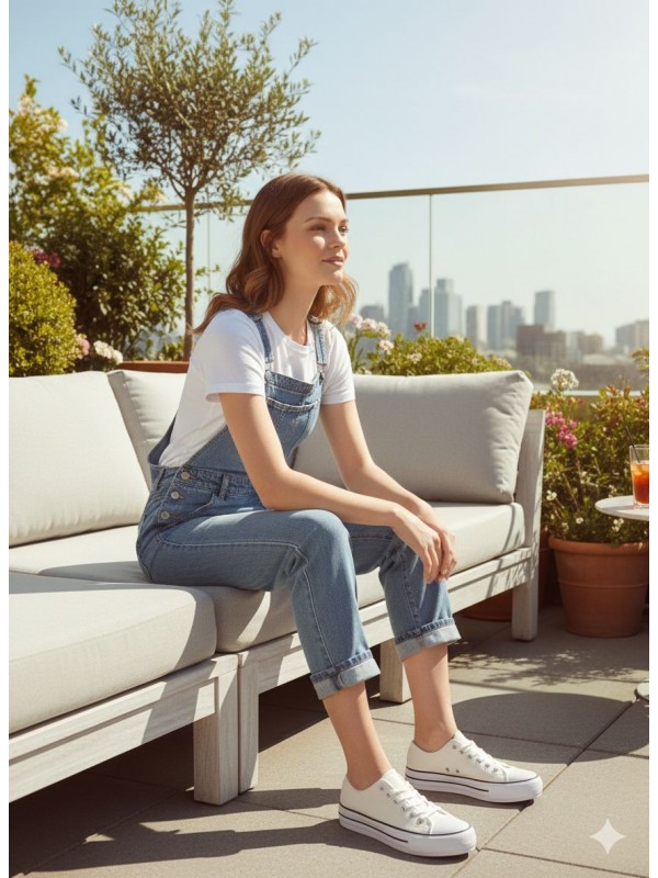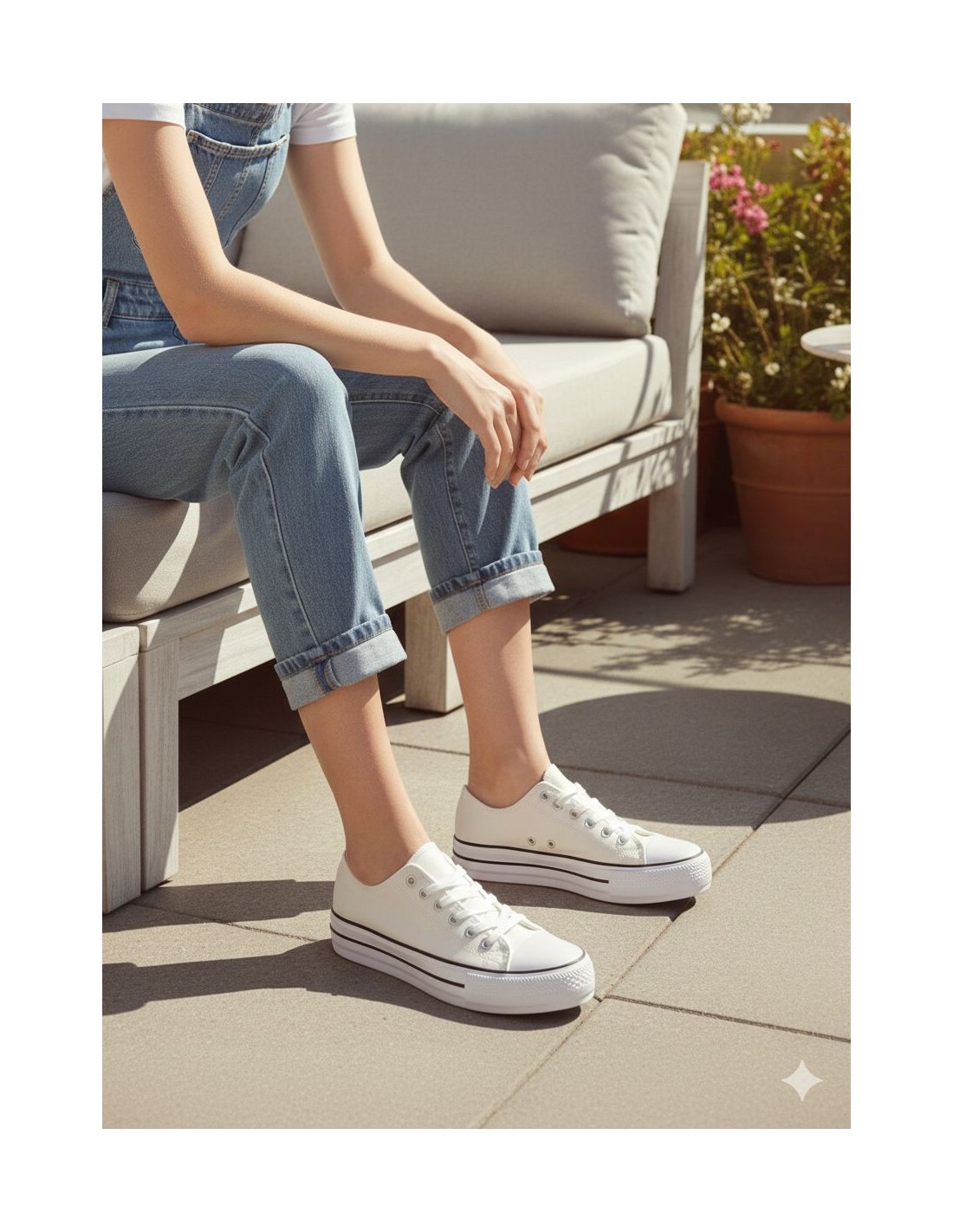 Zapatillas Blancas de Lona con Plataforma y Cordones para Mujer