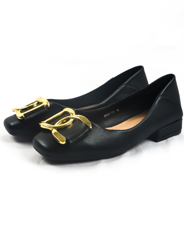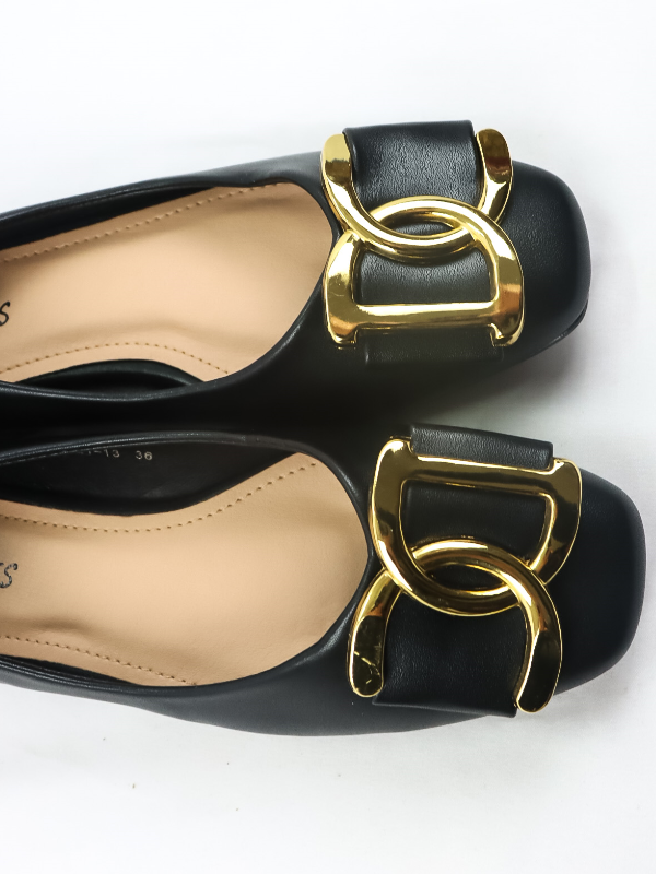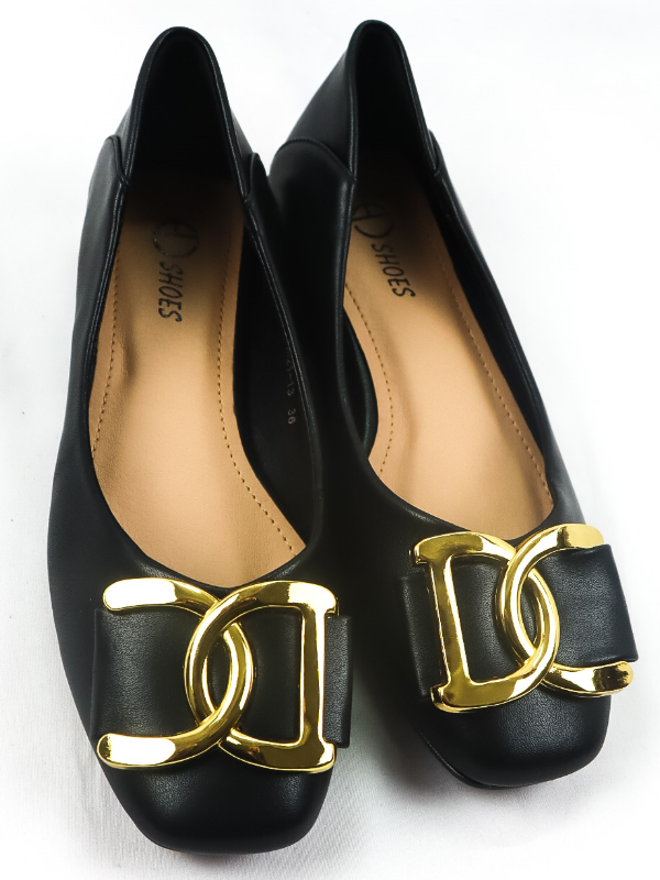 Bailarina con tacón bajo diseño letras dorado -mujer-