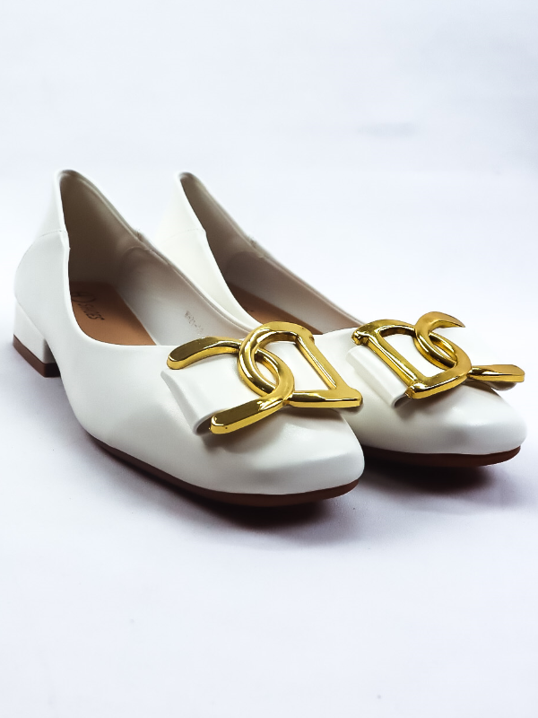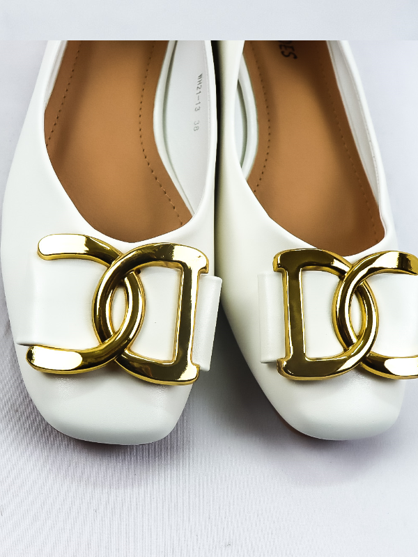 Bailarina con tacón bajo diseño letras dorado -mujer-