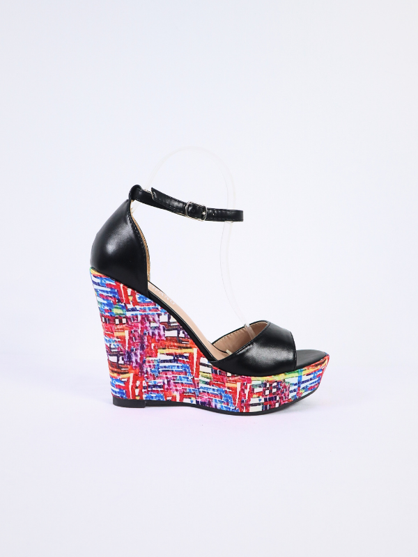 Sandalias de plataforma y cuña con diseño estampado multicolor. colores blanco y negro.