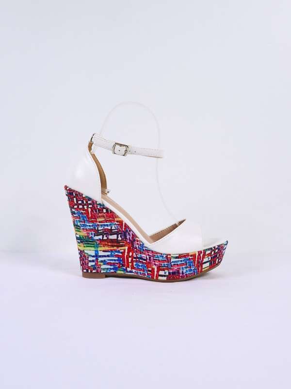 Sandalias de plataforma y cuña con diseño estampado multicolor. colores blanco y negro.