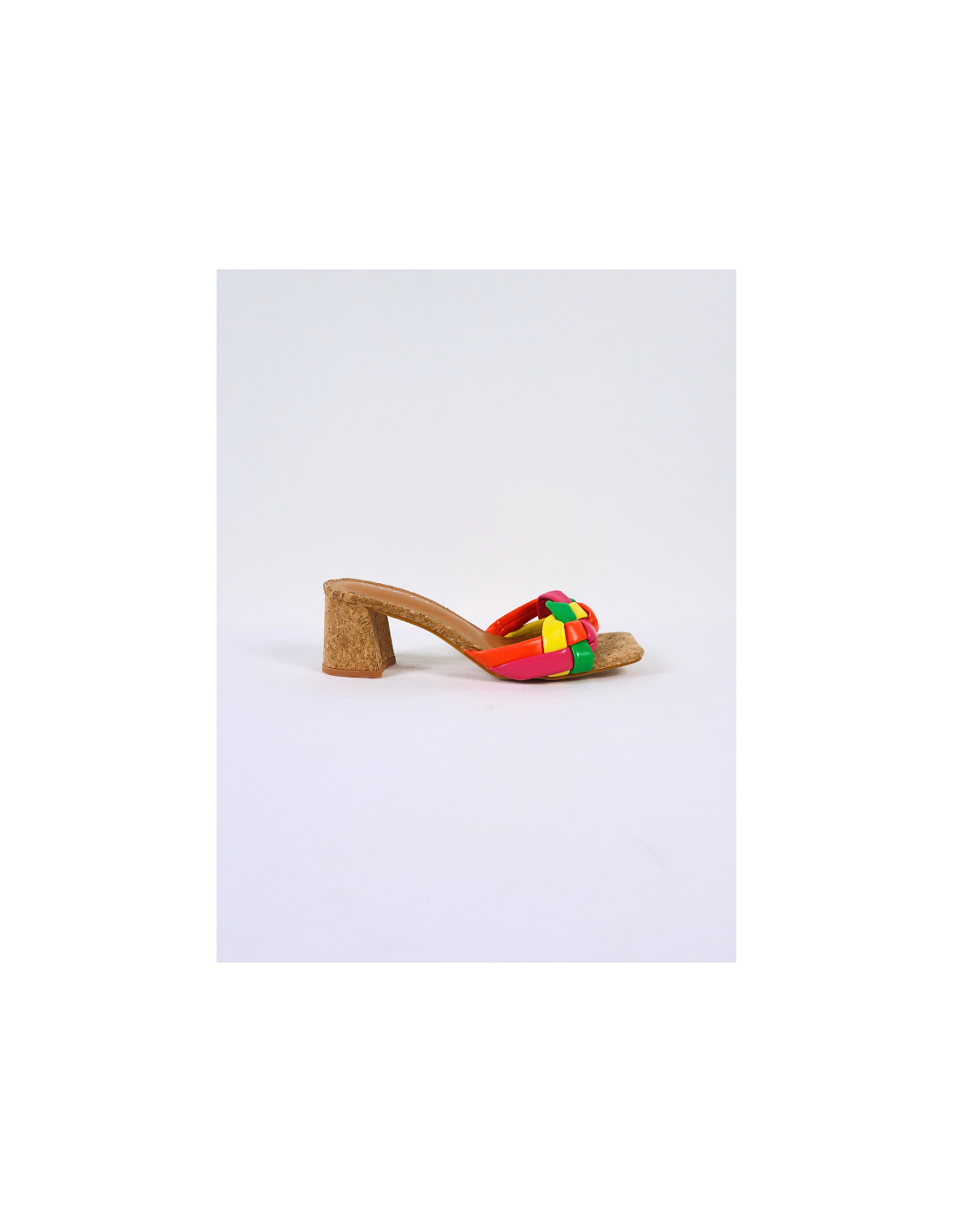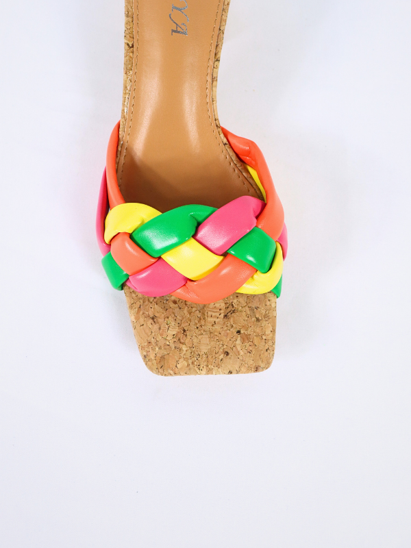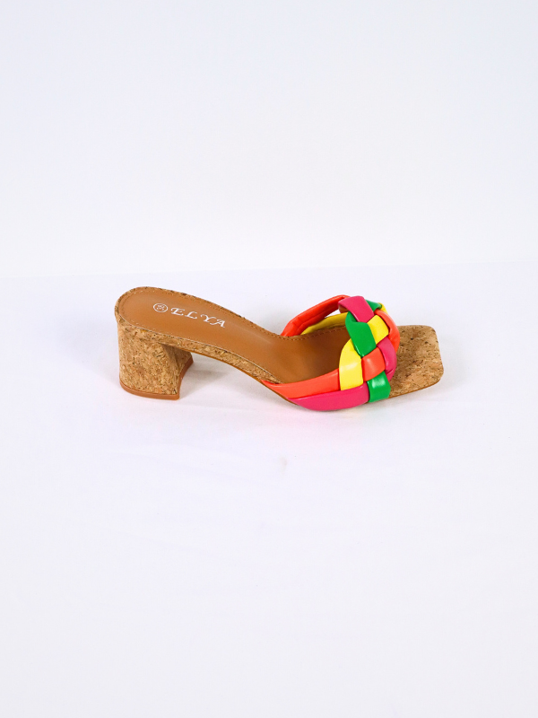 Sandalias para mujer, de tacón cuadrado, diseño trenzado colores combinados.