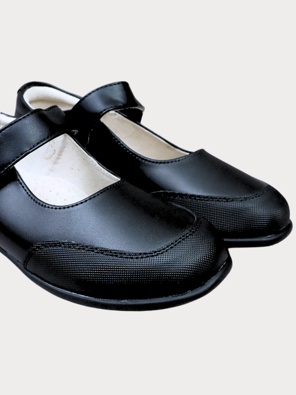 Nueva Colección! Zapato colegial para niña, color negro, corte piel, plantilla piel, piso goma, refuerzo anti rozadura en puntera, empeine de tira ancha con cierre de velcro, sistema flex. cómodos!