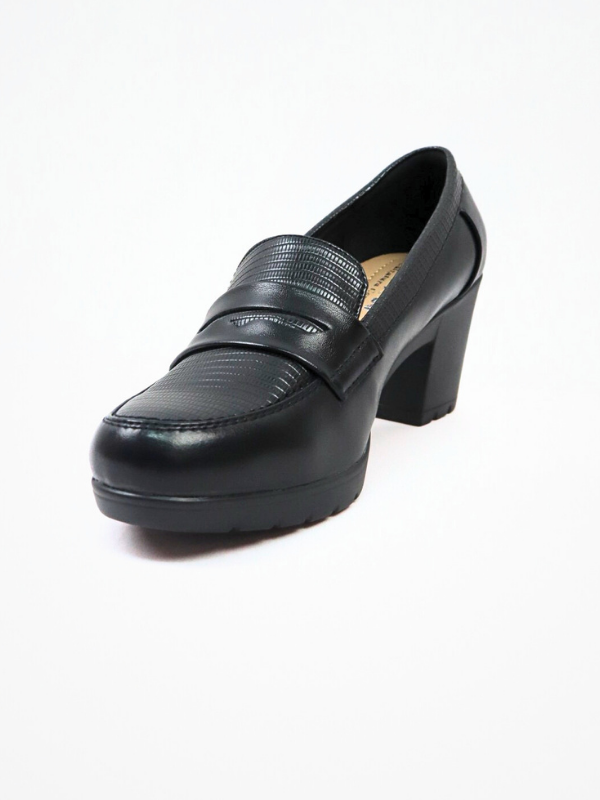 Nueva Colección! Zapato de tacón medio, grueso, para mujer, con cuña, color negro, corte piel, efecto cocodrilo, plantilla lisa, piso goma, punta cerrada, suela de goma antideslizante, para mejor comodidad y seguridad, diseño casual formal, temporada otoño/invierno, ideales para trabajar, y para el dia a dia.