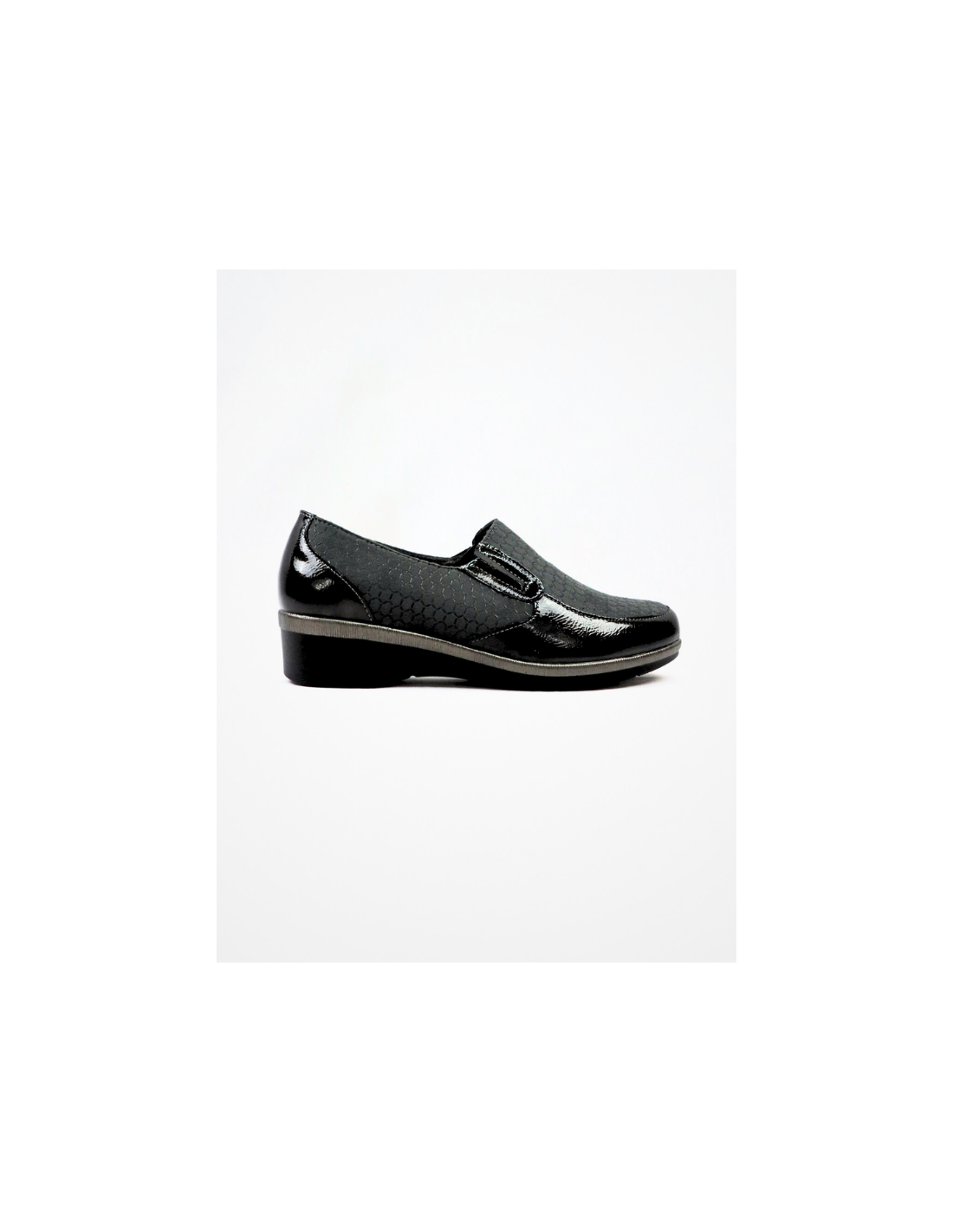 Nueva Colección! Zapato estilo mocasines para mujer, con cuña, color negro, corte charol, efecto cocodrilo, plantilla lisa, piso goma, punta cerrada, suela de goma antideslizante, para mejor comodidad y seguridad, diseño casual formal, temporada otoño/invierno, ideales para el dia a dia.