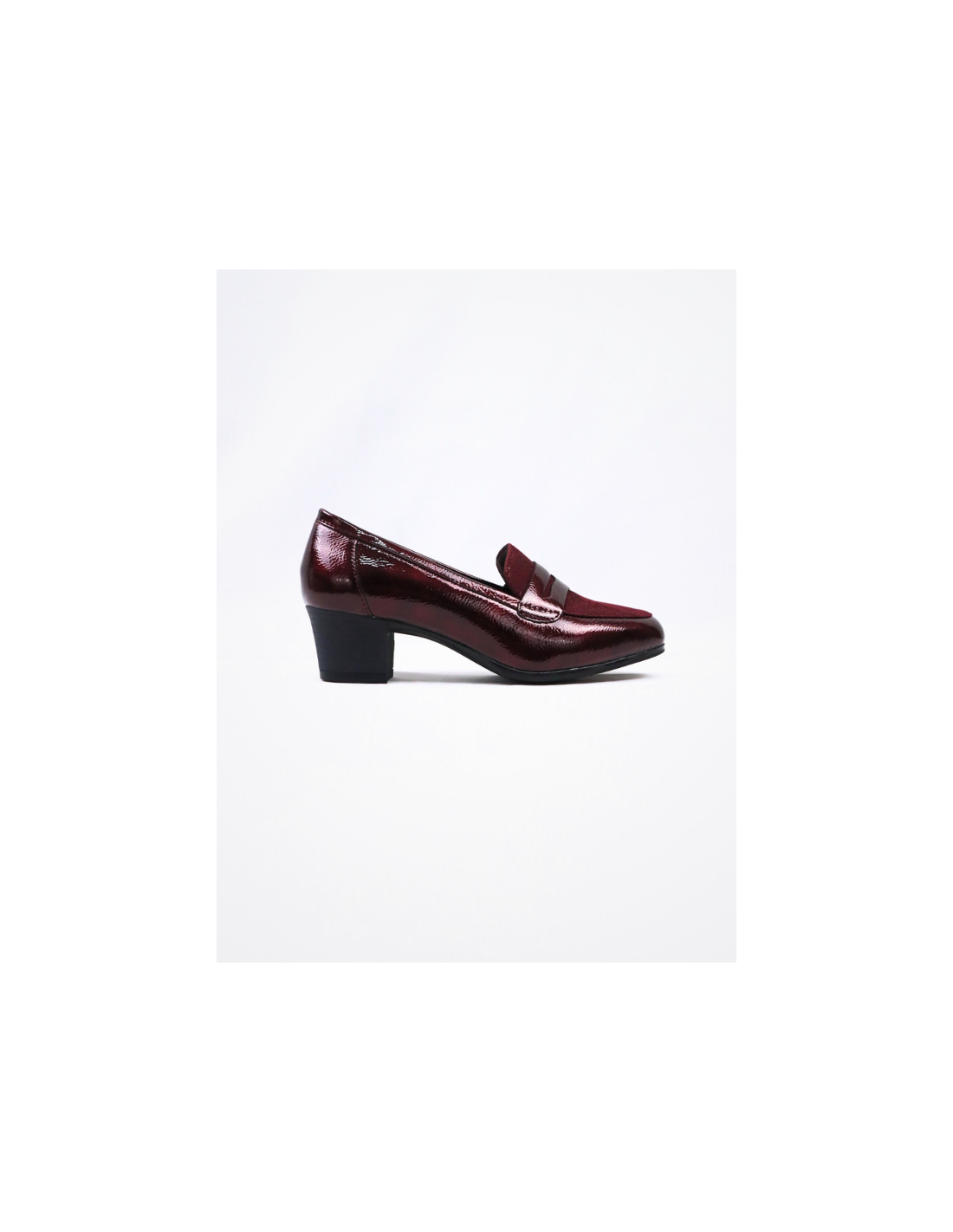 Nueva Colección! Zapato estilo mocasines para mujer, empeine en ante, con tacón bajo cuadrado, color granate, corte efecto charol, plantilla lisa, piso goma, punta cerrada, cómodos! diseño casual formal, temporada otoño/invierno,