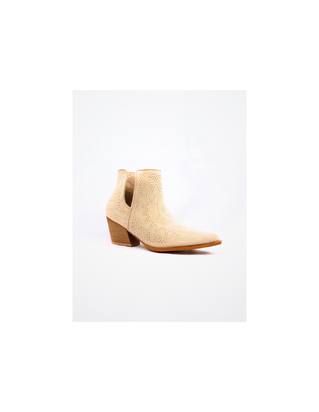 Nueva Colección! Botín bajo estilo cowboy, con aberturas en los laterales del botín, efecto calado, tacón grueso efecto madera, unicolor liso beige, estilo muy moderno y en tendencia! ideales al ser cómodos para andar, día a día y el trabajo,  combinables con vestidos y faldas, pantalones largos y cortos,  para Temporada, primavera/ Otoño/invierno.