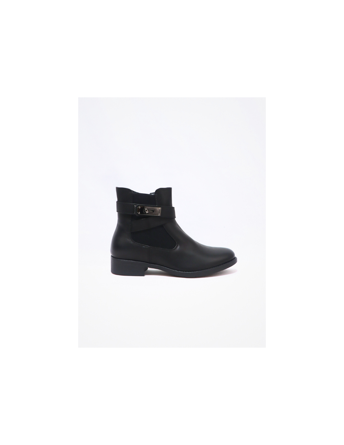 botines bajaos para mujer lisos, con detalle de hebilla decorativo.