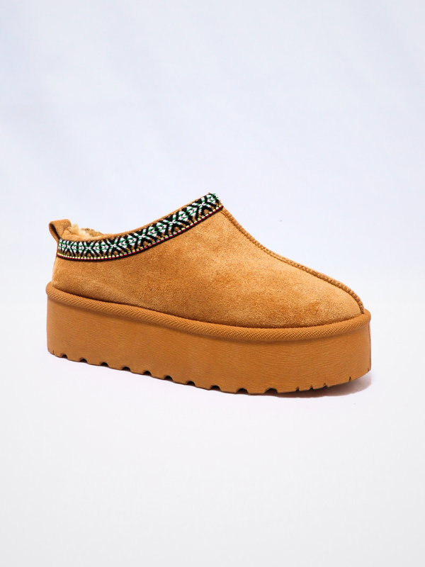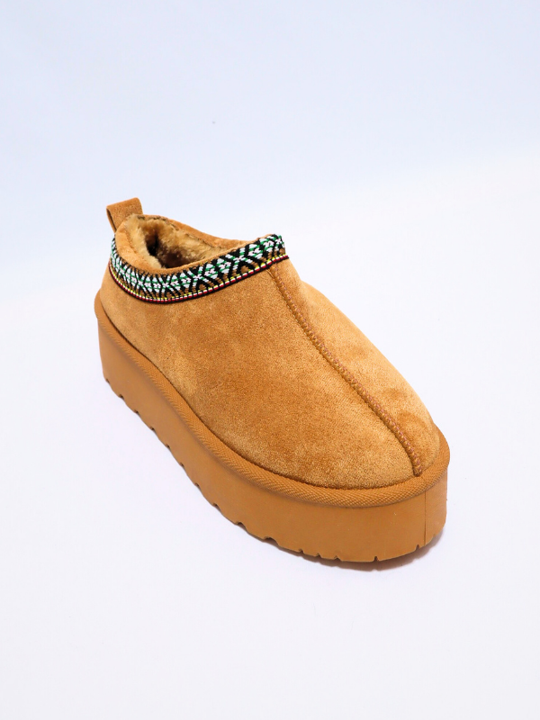Nueva Colección! Zapatilla clásica estilo mule, color camel, confeccionada en antes, plantilla suave, con trenzado decorativo, con suela de plataforma, punta redonda,  cálidos por dentro, ideal para día a día, y personas que buscan comodidad, temporada de primavera/ Otoño/invierno.