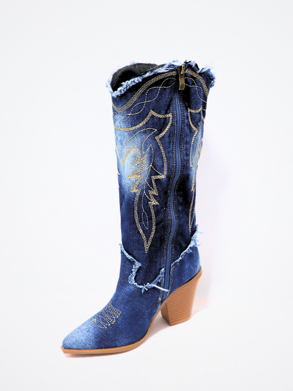 Nueva Colección Bota estilo cowboy, vaquero azul oscuro, bordado! tacón grueso 8,5cm. estilo en tendencia.