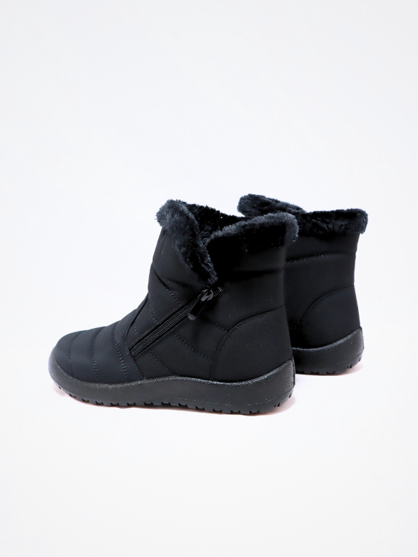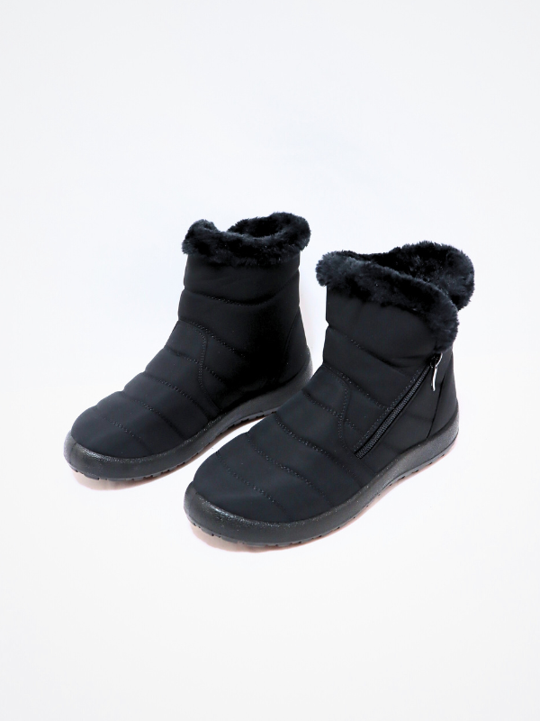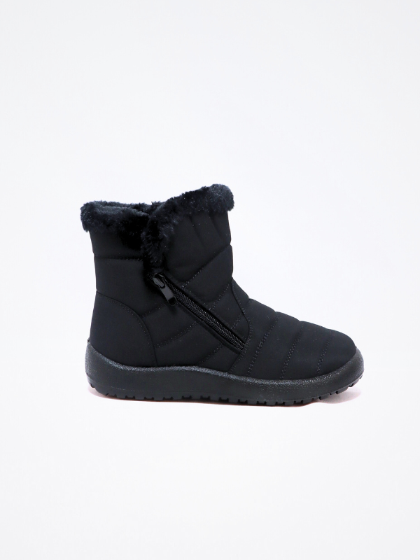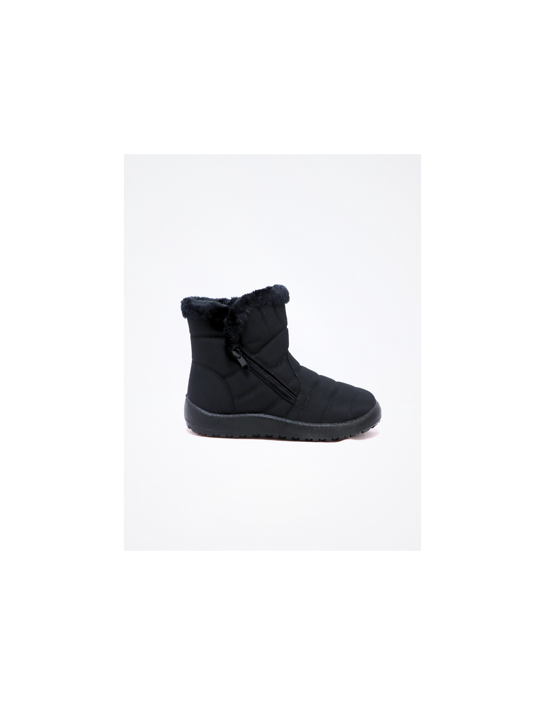 Nueva Colección! Botín elaborado en material impermeable, pelo por dentro, estilo moderno, con cierre de cremallera lateral, de suela de goma antideslizante, lo que le da estabilidad y seguridad al andar, con pelo, botín unicolor liso negro, estilo muy moderno casual y en tendencia! ideales día a día, combinables y cómodos! para Temporada, Otoño/invierno.