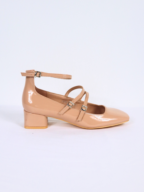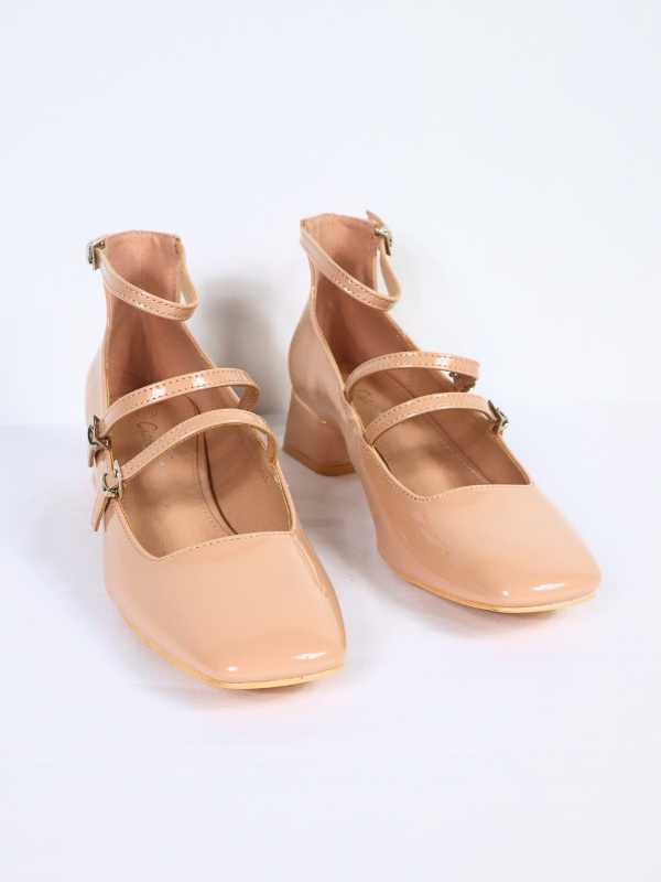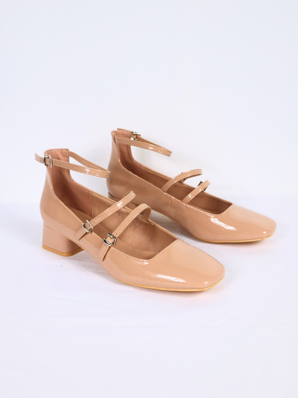 Zapato estilo bailarina efecto charol, tacón grueso bajo, doble cierre de hebilla por el empeine, correa tobillera de sujeción con cierre de hebilla, plantilla lisa, suela de goma, estilo casual, ideal para la temporada primavera verano, combínalo con tu estilo de ropa preferido!