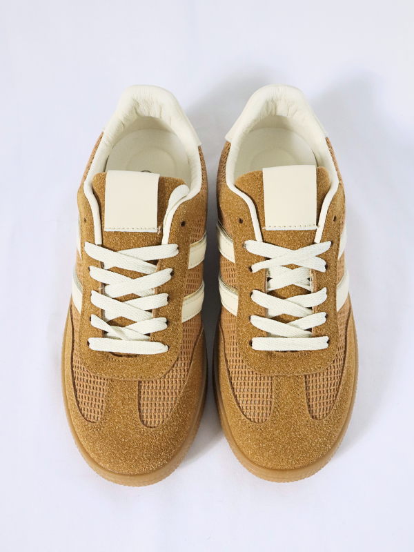 Zapatillas deportivas son modernas y casuales con una base de color caramelo.