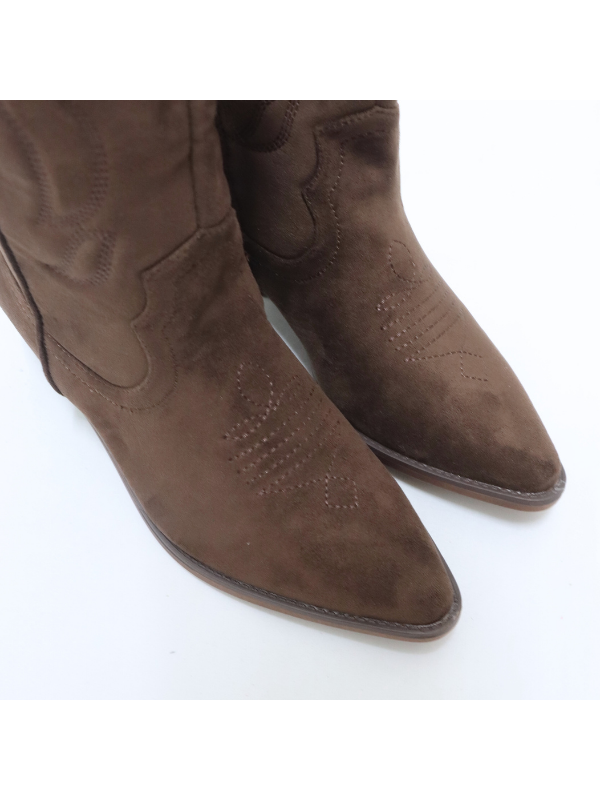 Botas altas de color marrón oscuro con cremallera lateral funcional. Elaboradas con materiales de alta calidad que garantizan un ajuste cómodo y un excelente soporte al caminar. Su diseño elegante y versátil combina a la perfección estilo y practicidad, convirtiéndolas en un imprescindible para cualquier guardarropa.