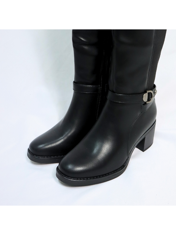 Botas altas con cremallera lateral que llega hasta la parte superior, diseñadas con paneles elásticos en ambos lados para un ajuste flexible y cómodo. Tacón de 4 cm que proporciona estabilidad y un toque elegante sin sacrificar la comodidad.